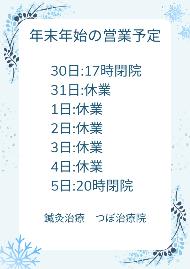 また年内は30日まで営業、年始は5日より営業開始となります。